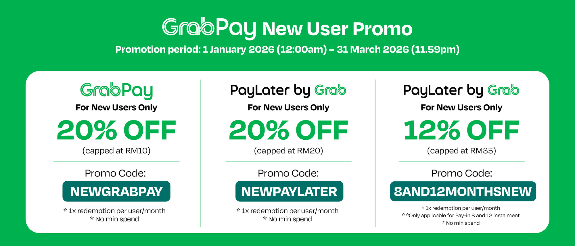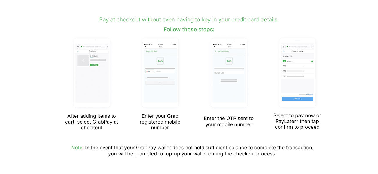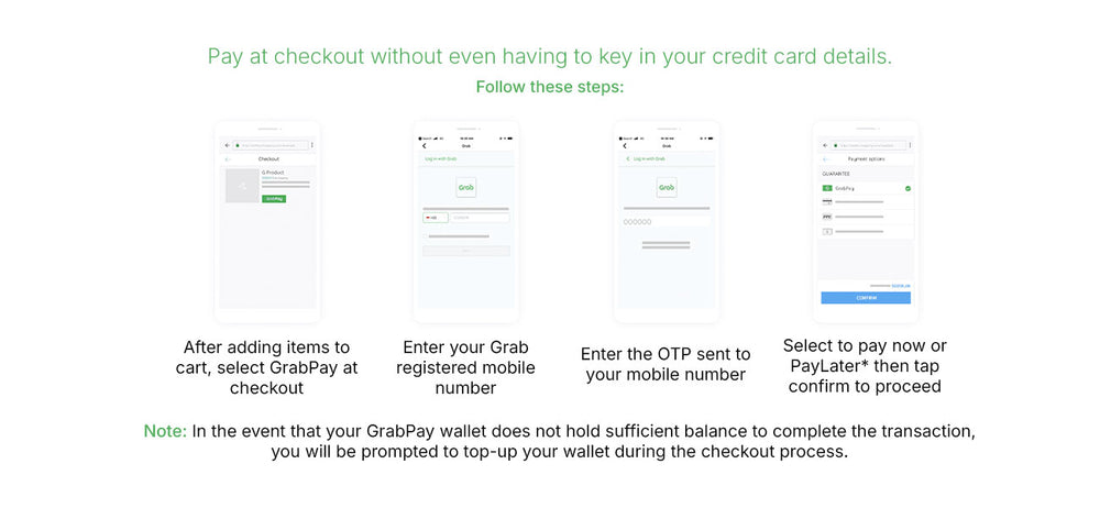 All PayLater transactions are billed and deducted automatically from your GrabPay Wallet. If there is insufficient balance in your GrabPay wallet, we will top up your GrabPay Wallet from your linked card and deduct the bill amount automatically. It will appear as a Grab transaction on your credit / debit card bill.