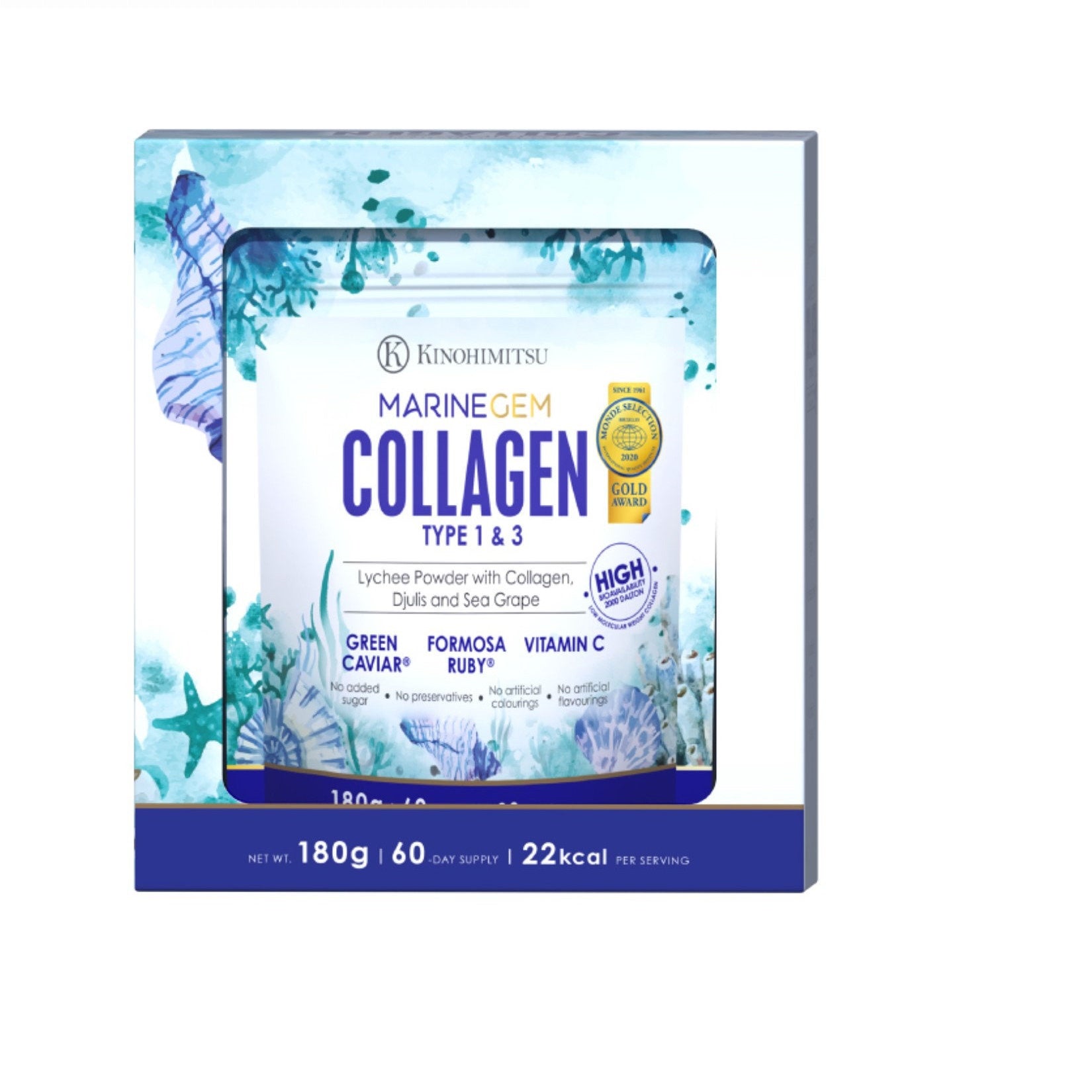 Kinohimitsu MarineGem delivers powerful nourishing ingredients to your skin and organs enabling you to defy signs of ageing. Densed with age-fighter Marine Collagen Peptides, great all-round-hydrator Green Caviar®, glycation-fighter Formosa Ruby® and powerful free radical-fighter Vitamin C help to turn back the clock for your skin and improve the connective tissue throughout the body!